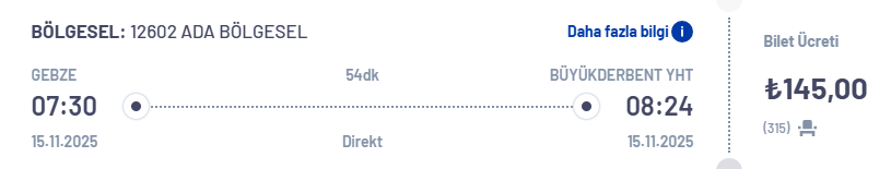 Varış: Büyükderbent YHT İstasyonu – 08:24