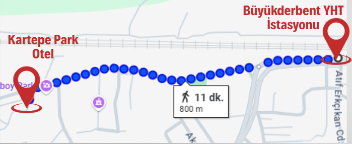 Büyükderbent YHT İstasyonu – Kartepe Park Otel Mesafesi: 800 metre